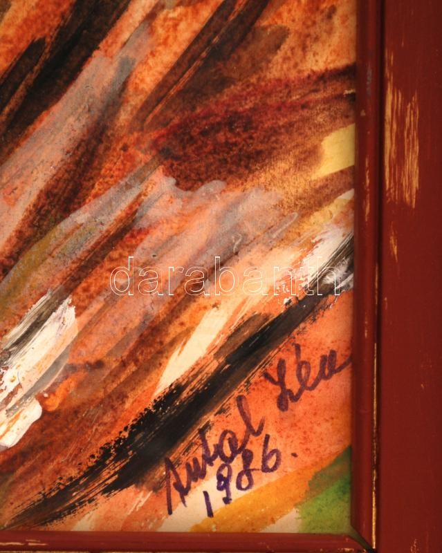 Antal Irén (1903-1999): Madárijesztő, vegyes technika, papír, jelzett, üvegezett fa keretben, 37,5×49 cm
