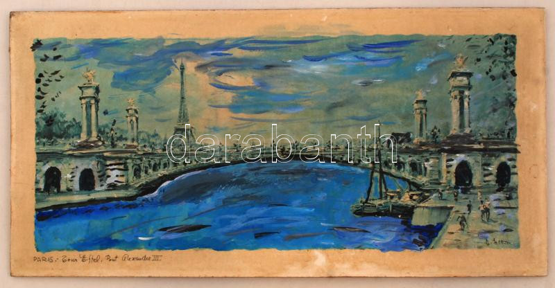 Ismeretlen alkotó: Párizs. Nyomat-vegyes technika, farost, 25x51 cm