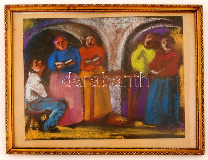 Jándi jelzéssel: Kórus. Pasztell, papír, üvegezett keretben, 31×41 cm