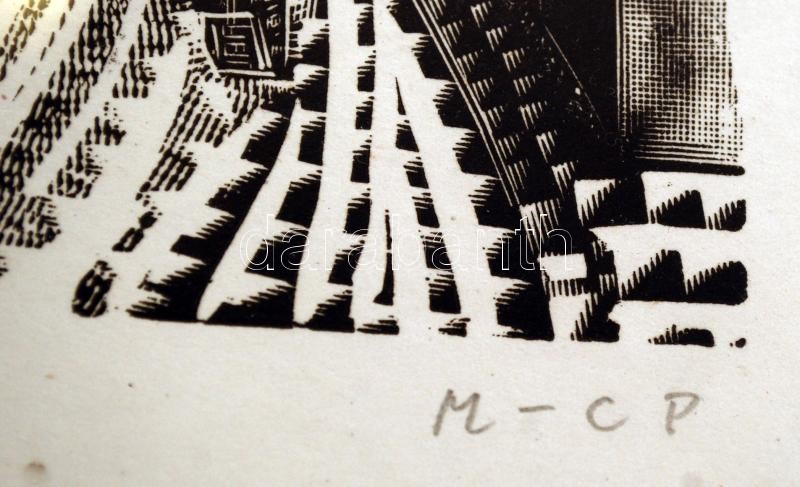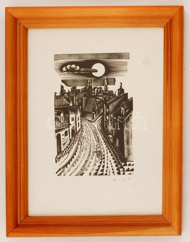 Molnár C. Pál (1894-1981): Kisvárosi éj. Fametszet, papír, jelzett, üv...