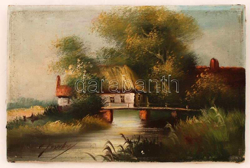 Olvashatatlan jelzéssel: Vízparti ház, olaj, vászon, 20x30cm