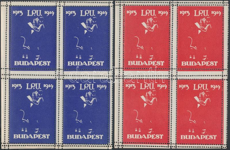 1913-1914 2 db klf IPU levélzáró 4-es tömb (kék és piros)