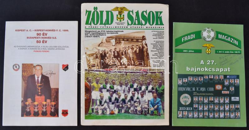 1997-2001 3 db futballozással kapcsolatos kiadvány(Fradi Magazin, Zöld Sasok, Kispest A.C. 90 év)