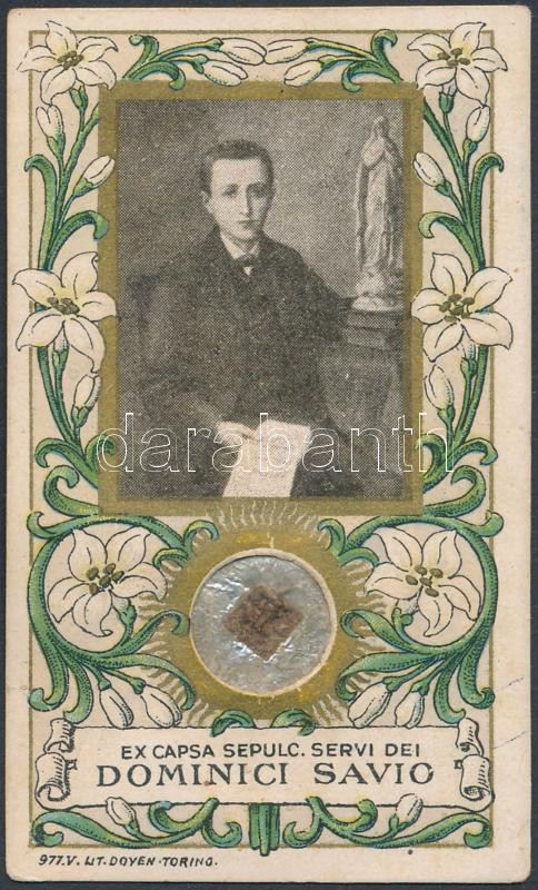 cca 1860-1900 Savio Domonkos a ministránsok védőszentjének ereklyés szentkép, 7x4cm