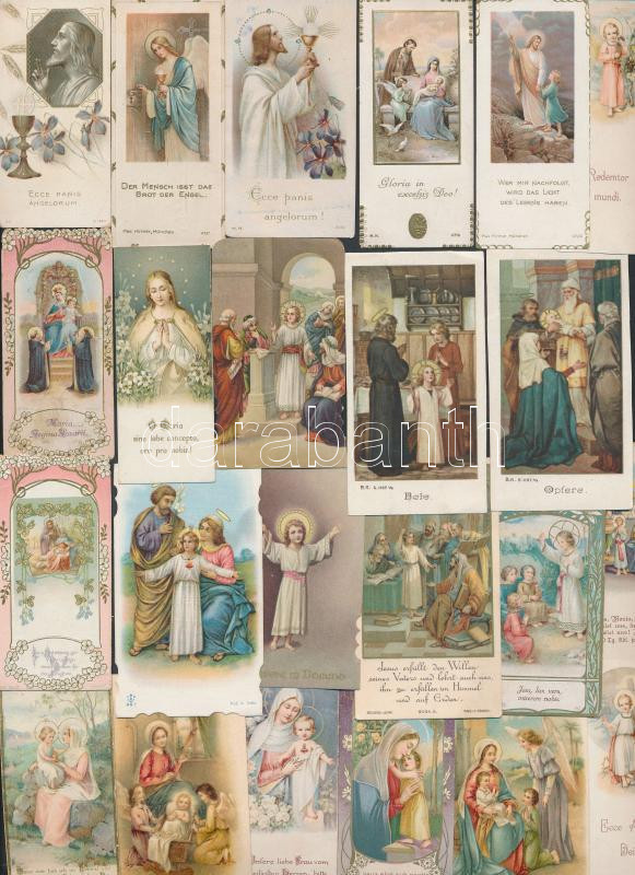 cca 1910-20 Vegyes szentkép tétel, benne Max Hirmer kiadó is, 25db, különböző méretben és minőségben, cca 9x4cm