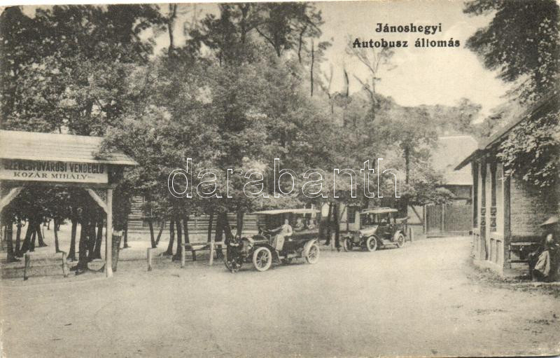 Budapest XII. Jánoshegy, autóbuszállomás, automobile, Kozár Mihály székesfővárosi vendéglője; kiadja Kozár Mihály (EK)