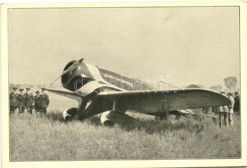 Description: Justice for Hungary! Az óceán repülés emlékére, kiadja a Magyar Aero Szövetség / Hungarian pilots, memorial card for their flight across the ocean, aeroplane, irredenta (fa)