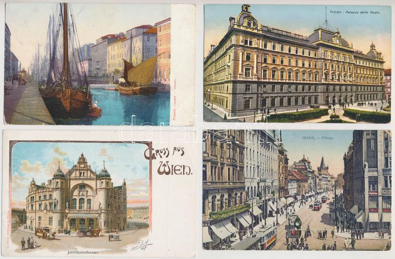 8 db RÉGI városképes lap; 4 db Bécs, 2 db Trieszt Prága, Lovrana / 8 pre-1945 town-view postcards;4 Vienna, 2 Trieste, Praha, Lovrana