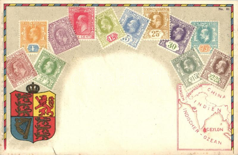 Ceylon Postage; set of stamps, coat of arms, Ottmar Zieher's Cart... https://www.darabanth.com/en/270-Online-auction/270.0/Postcards/Stamps~300030/Ceylon-Postage-set-of-stamps-coat-of-arms-Ottmar-Ziehers-Carte-Philatelique-No-81-litho-1938-~II1368116
