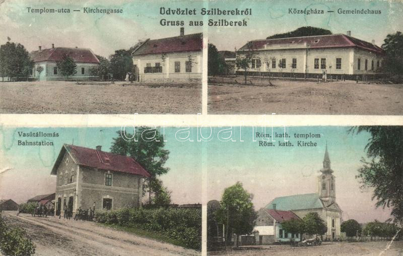 Szilberek, Backi Brestovac; Templom utca, községháza, vasútállomás, római katolikus templom / street, town hall, railway station, church (b)