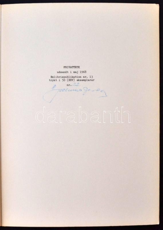 Description: 1968 Bibliografi over ungarsk exlibrislitteratur, Ungarische exlibrislitteratur. Frederikshavn, 1968. Sorszámozott: 22/50, 30x21cm. 1968 Bibliografi over ungarsk exlibrislitteratur, Ungarische exlibrislitteratur. Frederikshavn, 1968. Catalogues, on the topic of bookplates and other printmaking studies
