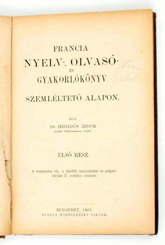 Dr. Hegedűs Izidor: Francia nyelv-, olvasó- és gyakorlókönyv szemlélte... https://www.darabanth.com/en/271-Online-auction/271.0/Books/Books-Foreign-languages~43/Dr-Hegedus-Izidor-Francia-nyelv--olvaso-es-gyakorlokonyv-szemlelteto-alapon-Bp-1907-H~II1341149