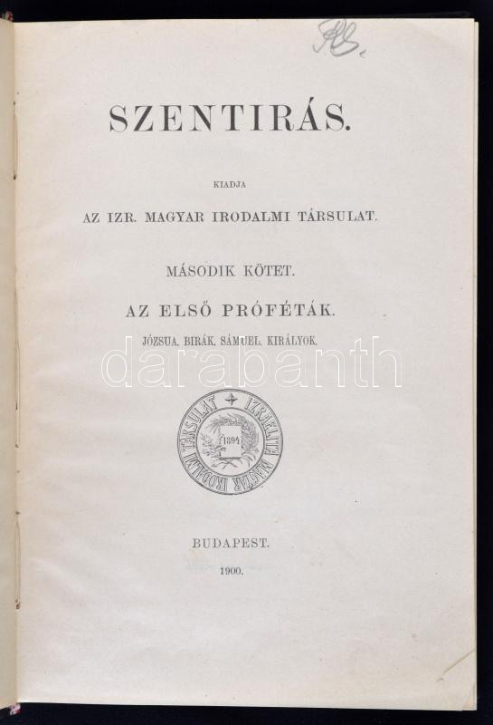 Szentírás. Kiadja az Izr. Magyar Irodalmi Társulat. Második kötet. Az ... https://www.darabanth.com/en/271-Online-auction/271.0/Books/Books-Judaica~41/Szentiras-Kiadja-az-Izr-Magyar-Irodalmi-Tarsulat-Masodik-kotet-Az-elso-profetak-Budape~II1338429