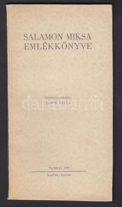 Vidor Gyula (szerk.) Salamon Miksa emlékkönyve. Budapest, 1946, Salamo... https://www.darabanth.com/en/271-Online-auction/271.0/Books/Books-Judaica~41/Vidor-Gyula-szerk-Salamon-Miksa-emlekkonyve-Budapest-1946-Salamon-Miksa-baratai-47-p-EbbC5~II1377167