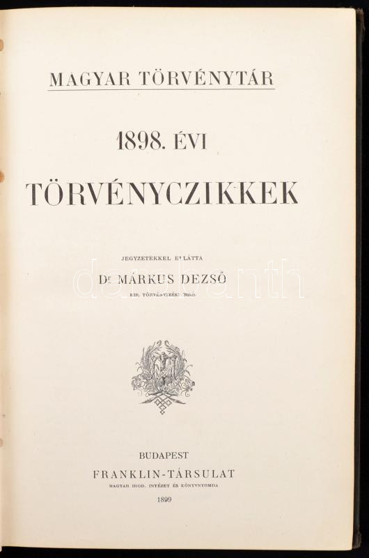 Magyar Törvénytár. Corpus Juris Hungarici. 1898. évi törvényczikkek. J... https://www.darabanth.com/en/271-Online-auction/271.0/Books/Books-Law~34/Magyar-Torvenytar-Corpus-Juris-Hungarici-1898-evi-torvenyczikkek-Jegyzetekkel-ellatta-Dr~II1275742