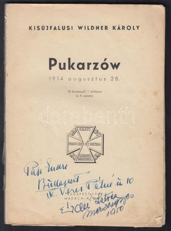 Kisújfalusi Wildner Károly: Pukarzów 1914. augusztus 28. 38 képpel, 1 térképpel és 8 vázlattal. Bp., 1939, Madách-Nyomda. Kiadói papírkötés, kopottas állapotban.