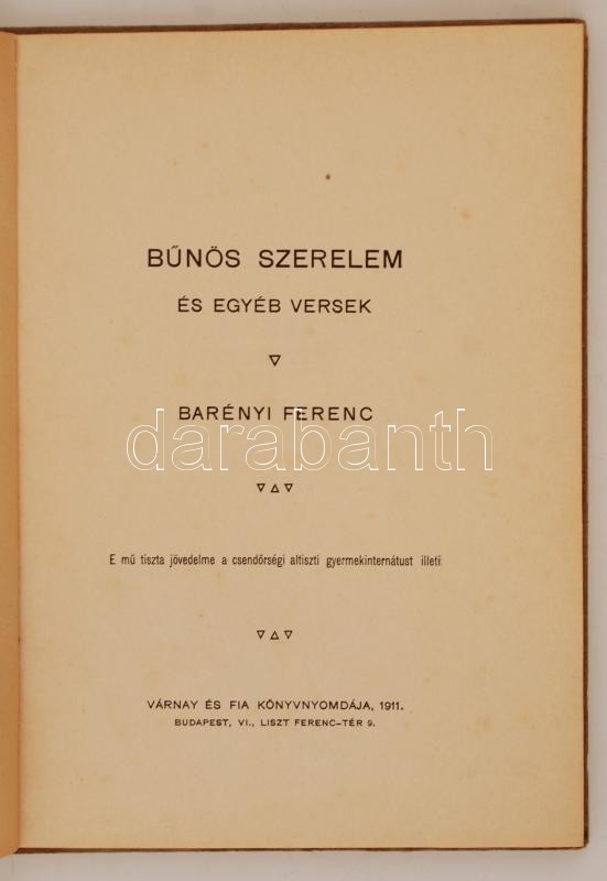https://www.darabanth.com/en/271-Online-auction/271.0/Books/Books-Other-rarities~46/Barenyi-Ferenc-Bunos-szerelem-es-egyeb-versek-Budapest-1911-Varnay-es-fia-konyvnyomdaja~II1352949