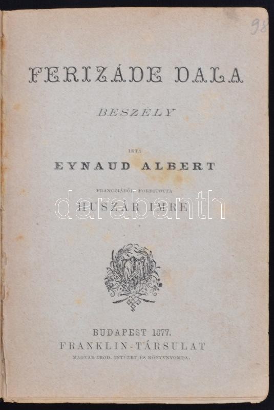 Colligatum. Ferizáde dala. Irta Eynaud Albert. Bp., 1877, Franklin. 57 p. Lúdas Matyi. Komikai elbeszélés. Írta Fazekas Mihály. Bp., 1904 Franklin. 56 p. Dorottya. Írta Csokonai Vitéz Mihály. Bp., 1896, Franklin. 111 p. Jókai Mór: A bűntárs. Bp., 1907, Franklin. 111p. Ennek utolsó lapja hiányzik. Korabeli, gerincén sérült félvászonkötésben.