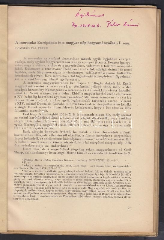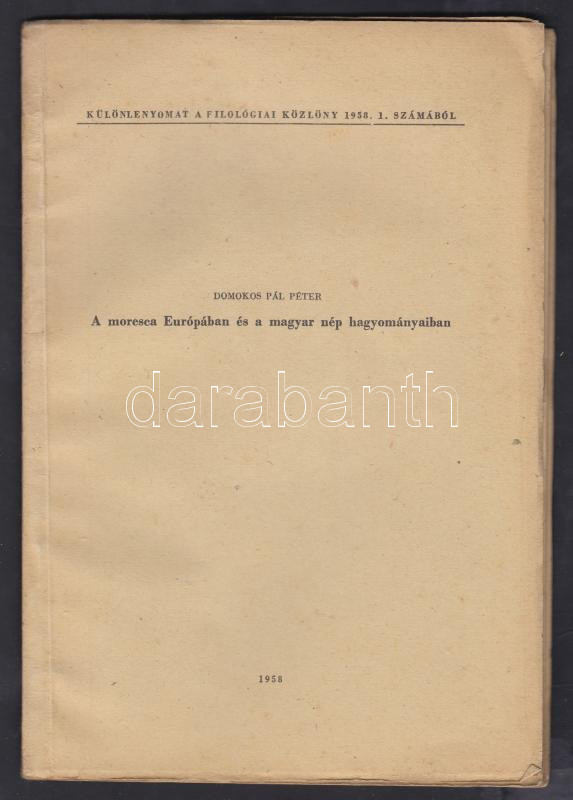 Domokos Péter Pál: A " moresca" Európában és a magyar nép ha... https://www.darabanth.com/en/271-Online-auction/271.0/Books/Books-Other-rarities~46/Domokos-Peter-Pal-A-moresca-Europaban-es-a-magyar-nep-hagyomanyaiban-I-II-Kulonlenyoma~II1373839