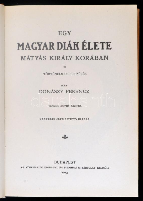 Donászy Ferencz: Egy magyar diák élete Mátyás király korában. Nagyapa ... https://www.darabanth.com/en/271-Online-auction/271.0/Books/Books-Other-rarities~46/Donaszy-Ferencz-Egy-magyar-diak-elete-Matyas-kiraly-koraban-Nagyapa-Konyvtarabol-Budap~II1372794