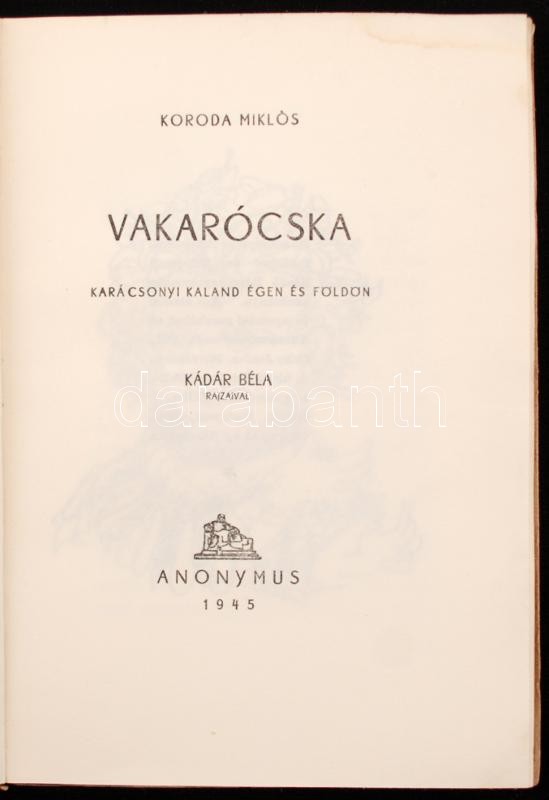 Koroda Miklós: Vakarócska. Karácsonyi kaland égen és földön. Kádár Bél... https://www.darabanth.com/en/271-Online-auction/271.0/Books/Books-Other-rarities~46/Koroda-Miklos-Vakarocska-Karacsonyi-kaland-egen-es-foldon-Kadar-Bela-rajzaival-Bp-19~II1322974