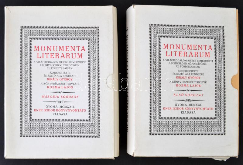 Monumenta literarum. A világirodalom kisebb remekművei legkiválóbb műf... https://www.darabanth.com/en/271-Online-auction/271.0/Books/Books-Other-rarities~46/Monumenta-literarum-A-vilagirodalom-kisebb-remekmuvei-legkivalobb-muforditoink-uj-fordita~II1346247