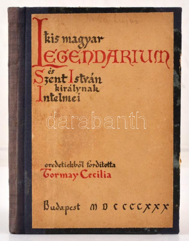 Kis magyar legendárium és Szent István királynak Intelmei. Fordította:... https://www.darabanth.com/en/271-Online-auction/271.0/Books/Books-Religion~42/Kis-magyar-legendarium-es-Szent-Istvan-kiralynak-Intelmei-Forditotta-Tormay-Cecilia-Budapest~II1368540