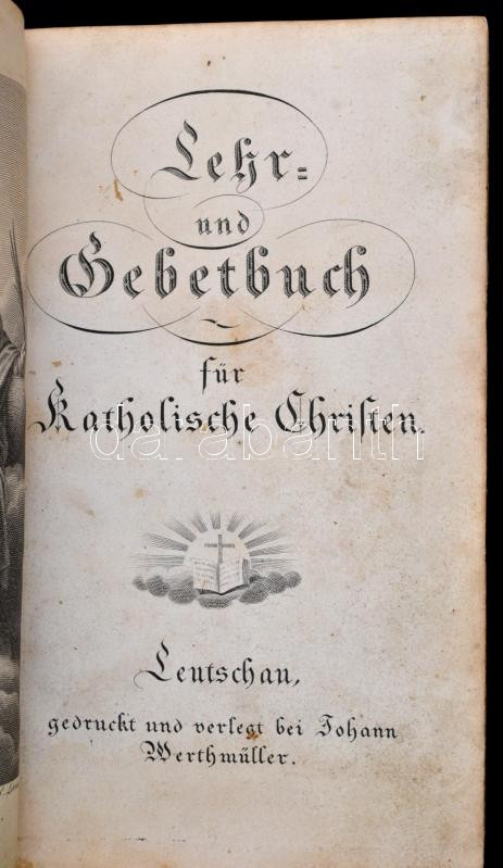 Description: Lehr- und Gebetbuch für Katholische Christen. Leutschau, gedruckt und verlegt bei Johann Werthmuller. Egészbőr kötésben, belül a gerincnél levált, előzéklapon rézmetszettel.