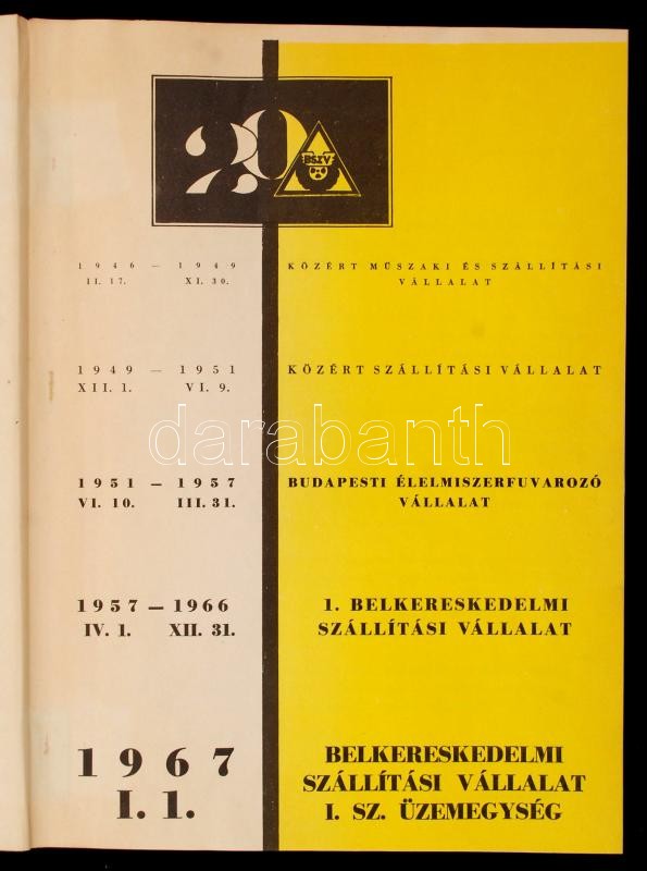 Belkereskedelmi szállítási vállalat 1. sz. üzemegység története 1949-1969. Budapest, 1970. Félvászon kötés, 151 p.