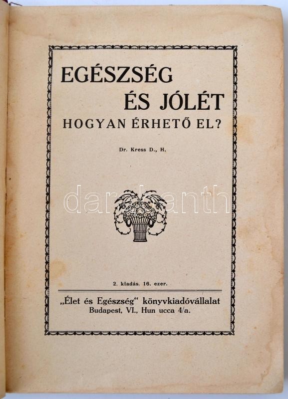 Dr. Kress D.H.: Egészség és jólét. Hogyan érhető el? Második kiadás. B... https://www.darabanth.com/en/271-Online-auction/271.0/Books/Books-Science-and-technology~40/Dr-Kress-DH-Egeszseg-es-jolet-Hogyan-erheto-el-Masodik-kiadas-Bp-en-Elet-es-E~II1291395