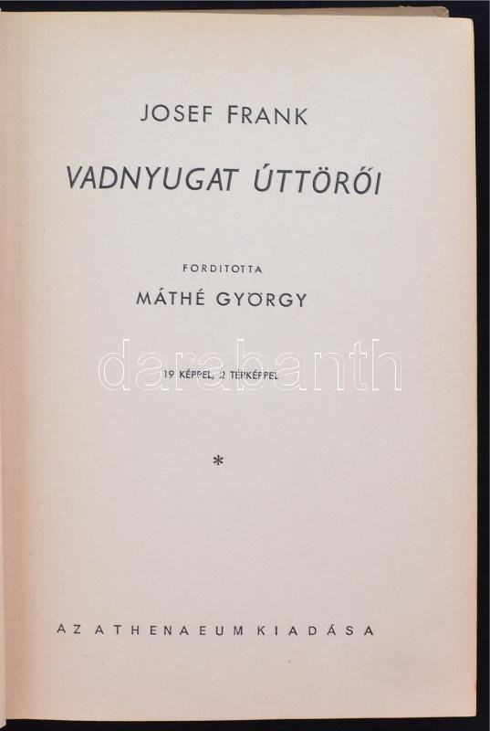 Josef Frank: Vadnyugat úttörői. Ismeretlen világok. Bp., é.n., Athenaeum. Kiadói aranyozott, kissé laza félvászon-kötésben.