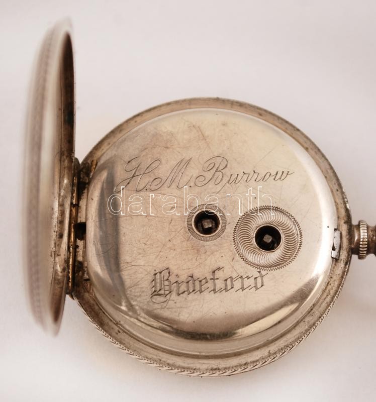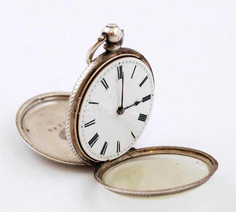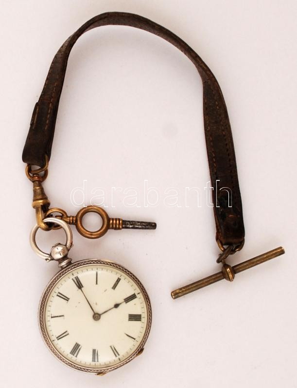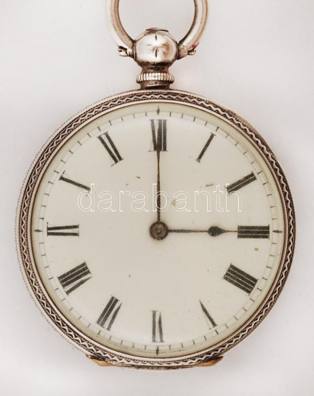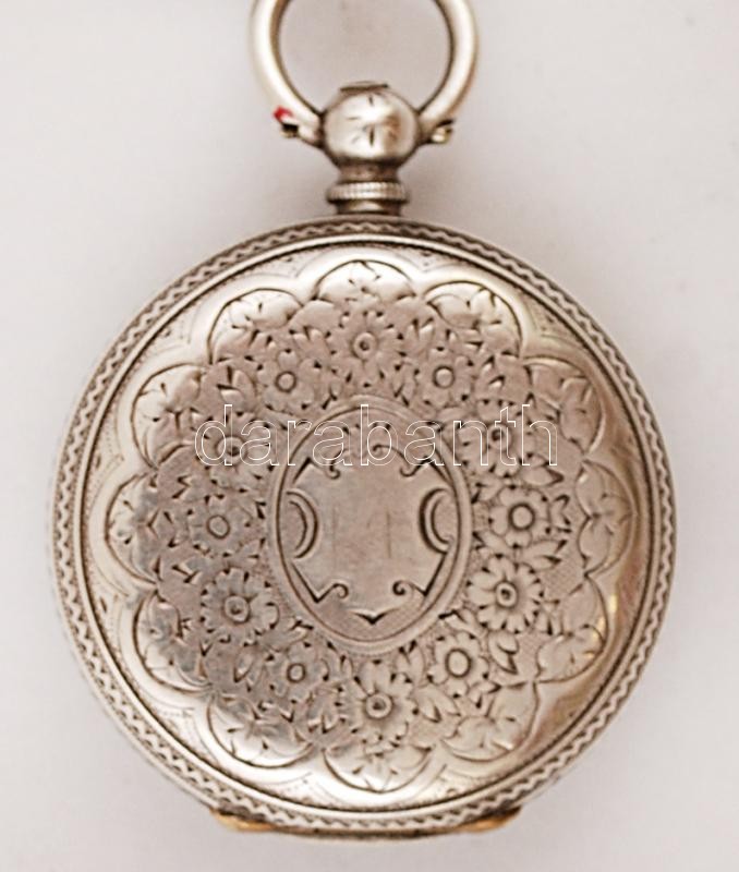 Ezüst(Ag) zsebóra, kulccsal, működik, jelzett, gravírozással, d: 3,5 c...