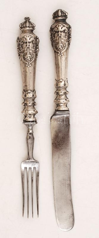 Ezüst(Ag)nyelű kés és villa, jelzett, br: 78 g