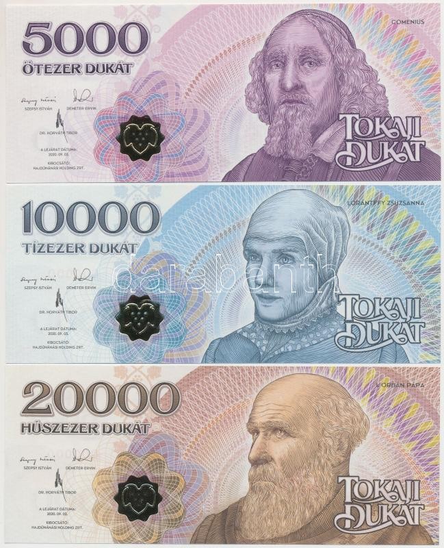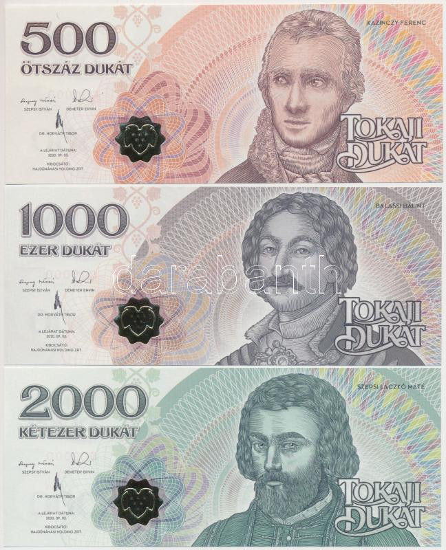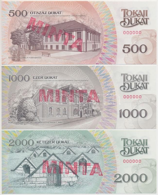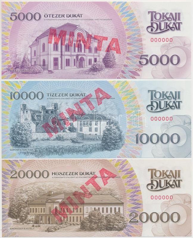 2016. "Tokaji Dukát" teljes helyi pénz sorozat: 500D + 1000D + 2000D + 5000D + 10.000D + 20.000D mind "MINTA" felülbélyegzéssel és "000000" sorszámmal T:I