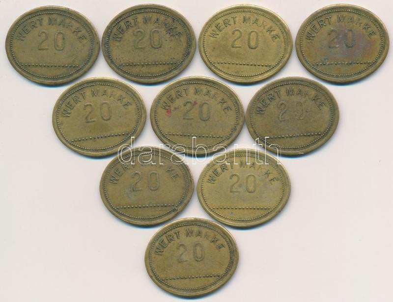 Németország DN "20 Wertmarke" Cu zseton (10x) (25x21mm) T:2,2- Germany ND "20 Wertmarke" Cu token (10x) (25x21mm) C:XF,VF
