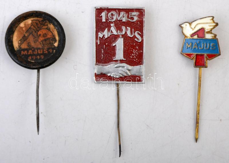 https://www.darabanth.com/en/271-Online-auction/271.0/Numismatics/Faleristics-medals-orders-badges~300017/1945-Majus-1-festett-fem-kituzo-18x37mm-plus-1949-Majus-1-20mm-plus-DN-Majus-1-zoman~II1371816