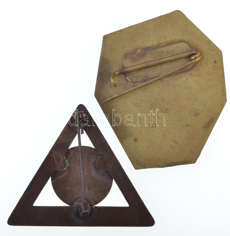 ~1950. "Magyar Természetbarát Szövetség - Túravezető" zománcozott fém jelvény (35x42mm) + 1971. "Villamosipari Találkozó - DÉMÁSZ Békéscsaba Szanazug" zománcozott fém jelvény (38x49mm) T:2