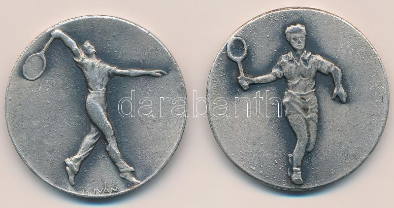 Iván István (1905-1968) DN "Férfi teniszjátékos" ezüstözött fém sportérem (40mm) + DN "Női teniszjátékos" ezüstözött fém sportérem (40mm) T:2,3 ph., ragasztónyom