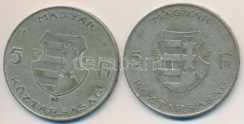 https://www.darabanth.com/en/271-Online-auction/271.0/Numismatics/Hungarian-coins-and-coins-with-Hungarian-mint-marks~300008/1947-5Ft-Ag-Kossuth-2x-T2-3~II1354744