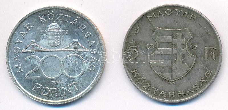 1947. 5Ft Ag "Kossuth" + 1992. 200Ft "MNB" T:2,2- patina