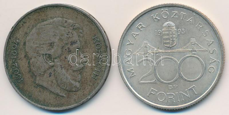 1947. 5Ft Ag "Kossuth" + 1993. 200Ft Ag "MNB" T:2,...