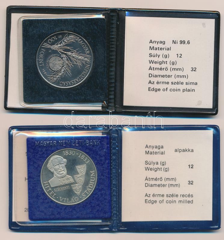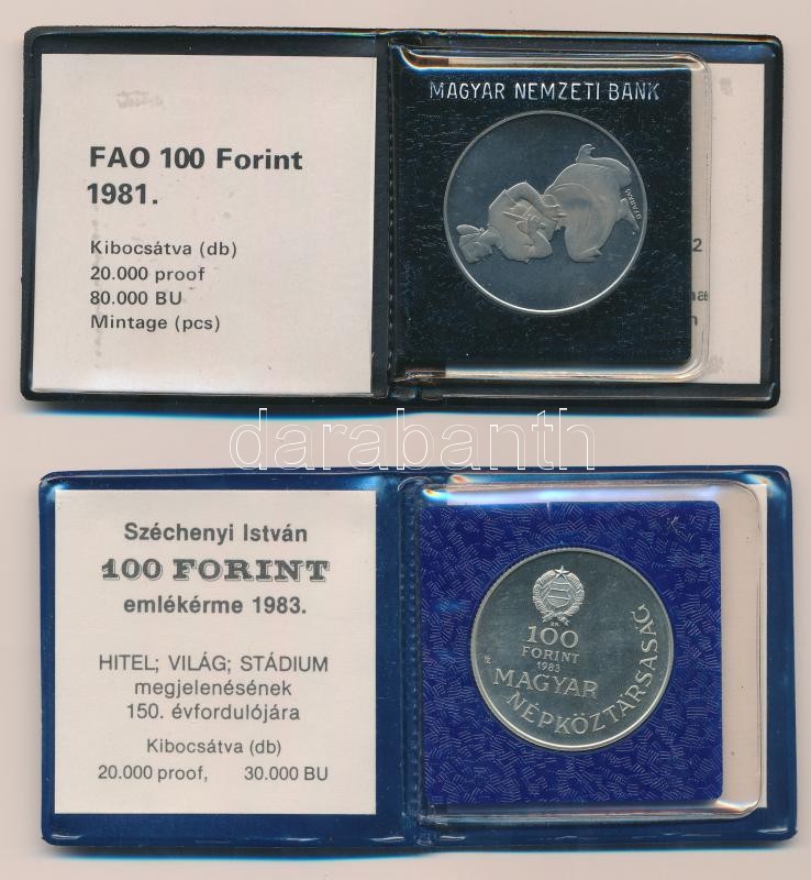 https://www.darabanth.com/en/271-Online-auction/271.0/Numismatics/Hungarian-coins-and-coins-with-Hungarian-mint-marks~300008/1981-100Ft-Ni-FAO-eredeti-tokban-tanusitvannyal-plus-1983-100Ft-alpakka-Szechenyi-eredeti-tok~II1369351