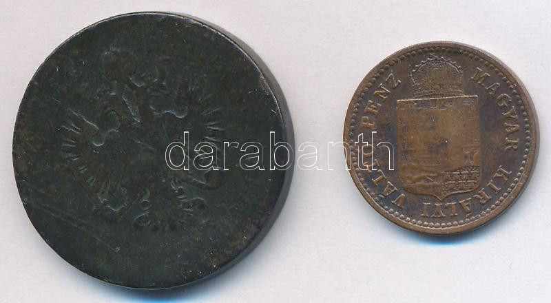 Vegyes: 1864B 4kr Cu + 1885KB 1kr Cu "Középcímer" T:3 ph.