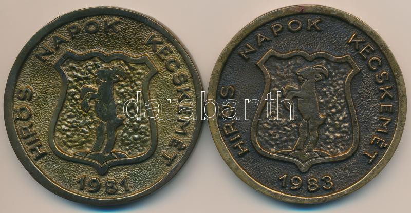 1981. "Hírös Napok Kecsekemét / Kertészeti Élelmiszeripari Gépkiállítás" öntött Br emlékérem (67mm) + 1983. "Hírös Napok Kecsekemét / Kertészeti Élelmiszeripari Gépkiállítás" öntött Br emlékérem (67mm) T:2 kis ph.