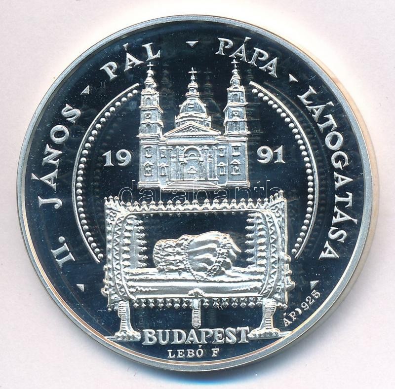Description: Bognár György (1944-) / Lebó Ferenc (1960-) 1991. "II. János Pál pápa látogatása - Pécs" Ag emlékérem, tanúsítvánnyal eredeti tokban (31,21g/0.925/42,5mm) T:PP felületi karc, kis patina