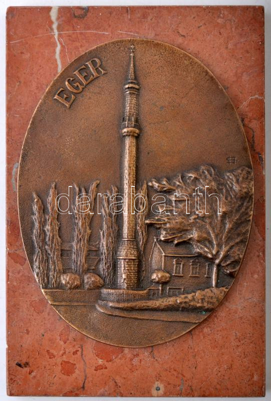 Horváth Sándor (1956- ) "Eger" Br plakett, márványlapra rögz...