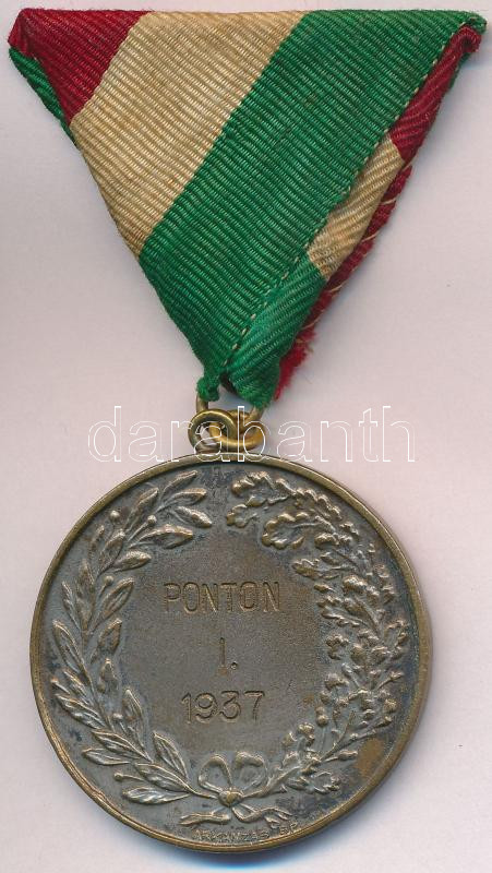 1937. "Ponton I. 1937" ezüstözött Br díjérem, mellszalagon, ...