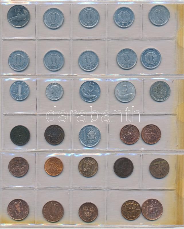 Vegyes: 333db-os kis fémpénz világgyűjtemény az 1800-as évek végétől a 2000-es évek elejéig, 10db berakólapon T:vegyes