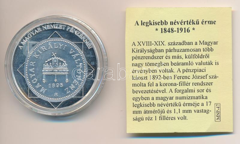 https://www.darabanth.com/en/271-Online-auction/271.0/Numismatics/Modern-restrikes-fantasy-coins~300010/DN-A-magyar-nemzet-penzermei--A-legkisebb-neverteku-erme-1848-1916-Ag-emlekerem-tanusC3~II1368485