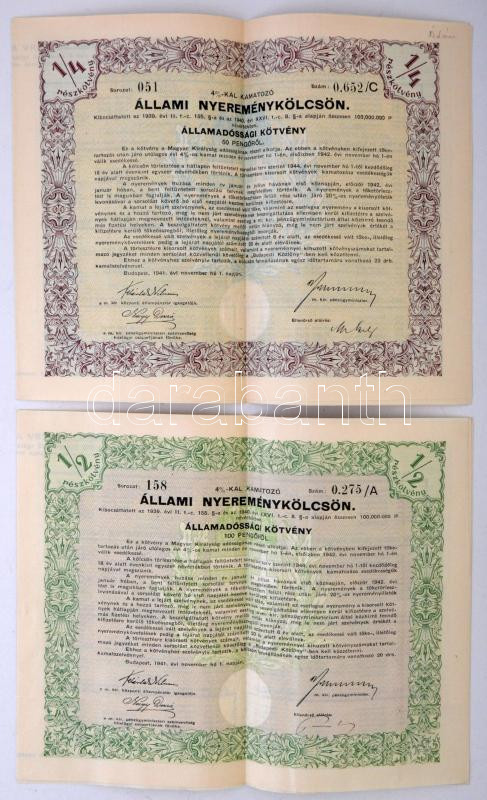 https://www.darabanth.com/en/271-Online-auction/271.0/Numismatics/Shares-and-Tickets~300005/Budapest-1941-425-kal-kamatozo-Allami-Nyeremenykolcson-allamadossagi-kotveny-14-reszkC3~II1373066